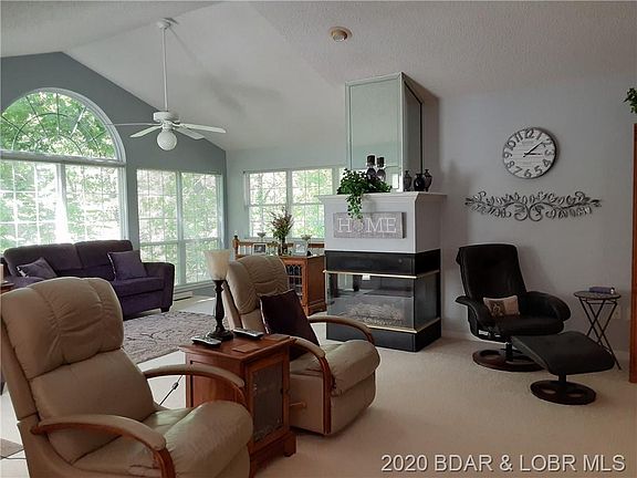 The Only home available in the most coveted Retirement Community at the Lake of the Ozarks, just came on the market! This 4 Bedroom home with 3 full baths has everything to offer & more. Fall in love with the remodeled kitchen showcasing new Quartz counter tops & all new Stainless steel appliances with a double wall mount oven for the pampered chef in all of us. This open floor plan with Main level living has an over-sized living room with fireplace, Master suite, two other bedrooms & the Mud/Laundry area right off the garage & kitchen area for the perfect main level setup. No Steps entering the front door & a small step from the two car attached garage into the mud room, a retired person's dream. Large bonus room downstairs, which could be a 4th bedroom or additional living area with workshop area for crafts or more. Enjoy tons of privacy surrounded by gorgeous landscaping, irrigation system & a wrap around sidewalk for enjoying the outdoors. Community pool is available too!