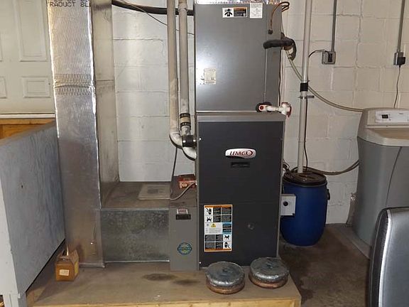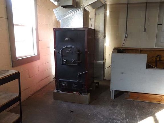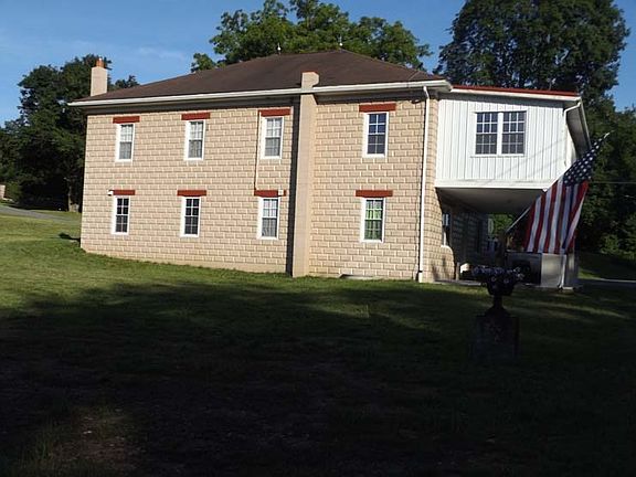 3 BR/2 full bath 2 level block home. Large rooms with laundry on second level. Kitchen has newer yellow pine cabinetry with tile granite top. Crown molding finishes most rooms. Large 12x31' enclosed 3 season porch has many possibilities. Propane hot air furnace combined with AC provide summer & winter comfort. Wood & coal back up provide cost effective heating & cooling. Large integral garage make this property attractive for businesses, hobby or storage. Call to check it out today!
