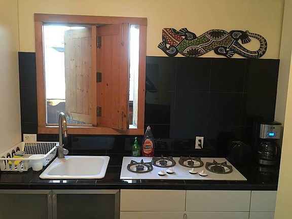 Modern Sunny Charming Loft Guest House Lg Lovely Yard Lovely light filled charming modern architectural 600 sq. ft. loft guest house with hardwood pine floors on the main level, a sunny bathroom with shower overlooking the garden, fully stocked kitchenette with stack unit washer/dryer, full size refrigerator, gas stovetop, toaster oven, microwave/convection oven and a unique pivot plank window surrounded by lovely tall trees. The downstairs area has a comfortable couch, coffee table, flat screen TV, lovely metal and glass bistro table and spacious closet. The sunny upstairs loft has bamboo flooring, many windows with tree views, a comfortable memory foam queen bed, TV, nightstands and a small mirrored wardrobe closet. Large yard with many tall trees, bougainvillea and grass in a quiet and tranquil setting. Amenities include wifi, DirecTV, laundry, linens and towels, bougainvillea, patio furniture, large hot tub and barbeque. The neighborhood is very nice and quiet and Ocean View Blvd. is filled with lovely homes. The loft guesthouse is located within walking distance to many restaurants, Mitsuwa Japanese Market (great for fresh sushi to go and/or enjoy the in-store cafe), shops and a shopping center as well as the popular Farmer's Market held on Sundays and nearby food trucks. Public transportation is readily available via the The Big Blue Bus and the Culver City Bus lines which run nearby on Venice Blvd. and Centinela. Venice Beach and Santa Monica are a short bike ride away and bikes are available for guests to use! Flexible length of stay. Furnished loft guesthouse. Ultilities and wifi included. Pets OK.