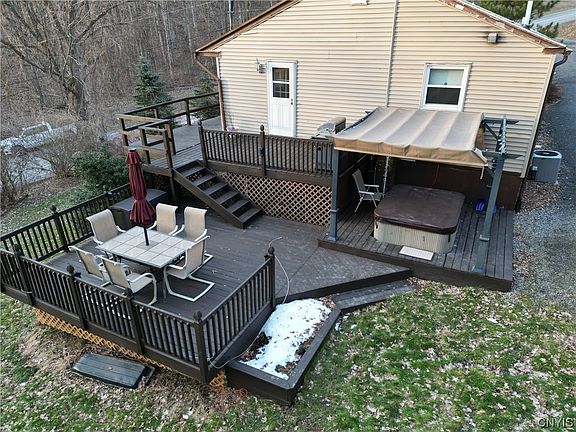 Nestled amidst a lush, wooded hillside, this charming ranch house offers a serene escape from the hustle and bustle of everyday life. Imagine waking up to the gentle rustling of leaves and the soft whisper of the wind through trees. Here, you’re not just surrounded by nature—you’re enveloped in it. With multiple levels of decks, you’ll have space to entertain, dine, and soak up the natural beauty. Picture yourself hosting a barbecue with friends, or unwinding in the hot tub under a canopy of stars. The night sky here is nothing short of spectacular. Away from city lights, you’ll have a front-row seat to constellations, shooting stars, and the moon’s glow. Leave the noise behind and embrace the tranquility of country life. Wake up to birdsong, take walks through the woods, and relish the simple pleasures of fresh air and open space. Step inside, and you’ll appreciate the warm hardwood floors, fireplace and rustic details. The natural materials blend seamlessly with the surroundings, creating a harmonious retreat. The finished basement is a versatile space with a bar, tv room, laundry and ample storage. Every window frames a picturesque view; nature will be your constant companion.