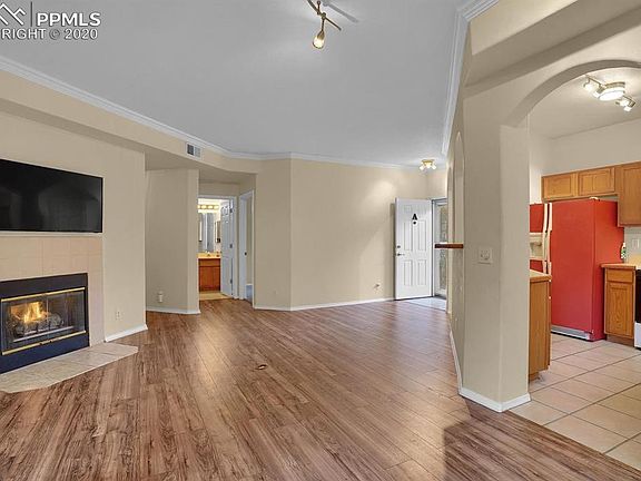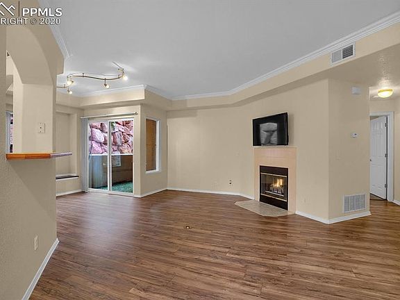 Low maintenance living at its finest! Open yet cozy 2 bedroom, 2 bathroom condo featuring all new carpet and wood laminate flooring. Master bedroom comes with a walk in closet and its own en suite bathroom with a large soaking tub/shower combo. Secondary bedroom features a large walk in closet and bathroom access from bedroom. Snuggle up near the gas fireplace in the winter or enjoy the private patio on those warm summer nights. Community has its own private pool and req center. Soak in all that this incredible location has to offer with trails, parks, and lakes all near by. Home is close to many restaurants, entertainment, military installations and Colorado Springs World Arena.