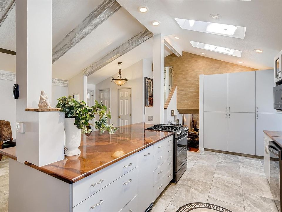 - Kitchen Island, Pantry, Security System, Skylights, Remodeled, Vaulted, Updated, Heated Basement