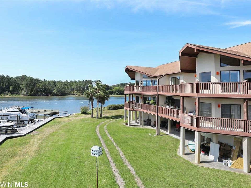 Imagine waking up everyday to breath taking water views from your bed, and it only gets better from there! This spacious 3 bedroom 2 bath condo is in the last corner unit right on the water in Sailboat bay! It is a must see! The unit comes with your own boat slip with a lift! Pull your boat out of the slip and you can take a left to go down the Intracoastal waterway or take a right and be right in Mobile Bay headed to Tacky Jacks! This top floor unit includes an elevator and wrap around porch. The amenities in this complex can not be topped! Sailboat Bay has gated 43 acres that has boat storage for your boat trailer, 2 pools (one that is sitting right on the water with amazing views), exercise facility, and a club house. Come take a look a this condo that has wide open large living space, walk in master shower, 2 guest bedrooms and a large guest bathroom. Don't miss this unit!