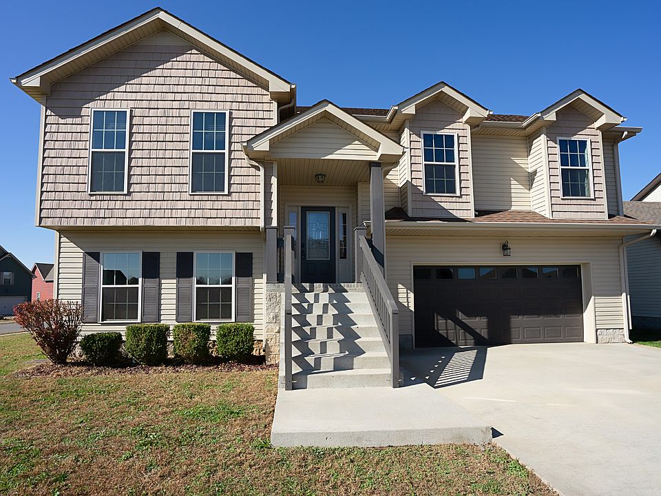 Beautiful split foyer on corner lot with privacy fence and two car garage. Features 4 beds, 3 full baths, spacious rec room and siting area in basement with high ceilings. Covered back deck. Fresh paint, brand new appliances, new carpet, new lighting, and new handrails! There are underground utilities, uniform mailboxes, and sidewalks throughout the community! Potential 5 bedrooms.