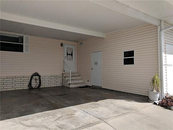 RARE OPPORTUNITY in the established Zephyrhills community of Spanish Trails West! You'll love all that this property and this community have to offer! DON'T MISS THIS: the sale of this home INCLUDES a land share in the community valued at $37K!!! This 2 bedroom, 2 bathroom, 2 car carport home is LARGE and OPEN! Plenty of space in the kitchen/dining room/living room area to entertain all of your guests. The air-conditioned Florida Room on the front of the house is the perfect place to drink your coffee and catch up on a good book or read the newspaper. The master bedroom features a walk-in closet and dual vanities in the master bedroom. Outside, there is a YUUUGE storage shed with double doors for a golf cart and plenty of room for a workshop and storage. Included in the low monthly fee is lawn maintenance, trash removal, and cable! Call today to check out this great home!