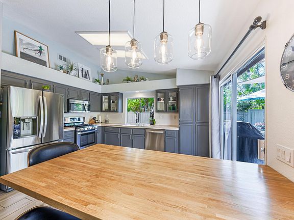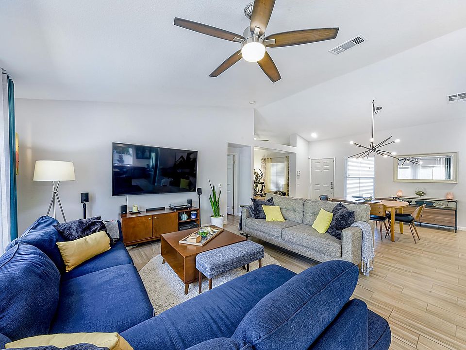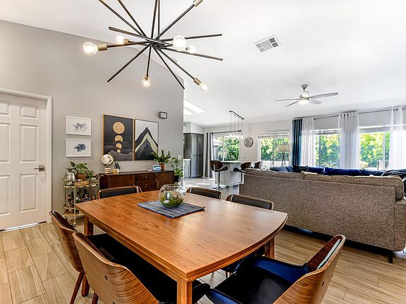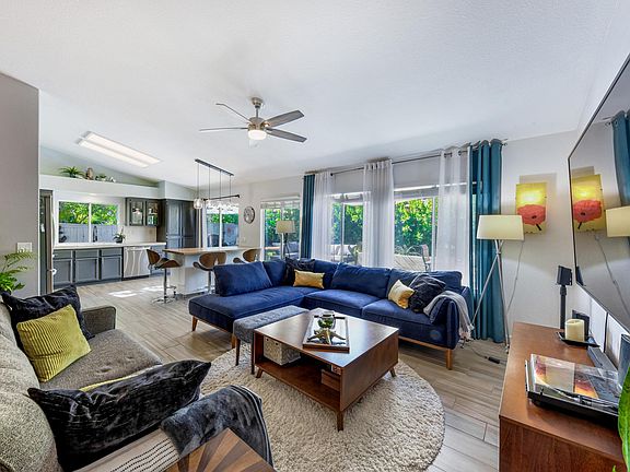 This light bright and modern home located in Palm Desert, CA has tile and laminate flooring throughout the entire home including the 3 bedroom, 2 bathrooms and a den. The large owner's suite has vaulted ceilings and a huge closet and spa-like bathroom. The stunning bathroom has an oval soaker tub, dual shower heads, dual vanities and sit-down vanity. The open Great Room has vaulted ceilings, modern light fixtures and large windows to let in natural light. The kitchen includes the french door refrigerator with ice and water in-door. Laundry room washer and dryer included as well. The 2 guest bedrooms have ceiling fans and laminate flooring. The renovated guest bathroom has an updated vanity tile flooring and a combination shower/tub. The backyard has an updated stamped concrete deck, outdoor spa and a multiple seating area. There is a 2 car garage and large driveway with plenty of parking. Low electricity bills as 85% to 95% of the electricity is covered by the home's solar package. You just pay the yearly overages (if there is any). Furniture not included. Utilities: About 90% of electricity cost are included in the lease. You just pay the yearly overages (if there is any). Trash pickup and sewer is included. Gas and water is the responsibility of the tenant. Small dogs and cats are allowed. Furniture not included.