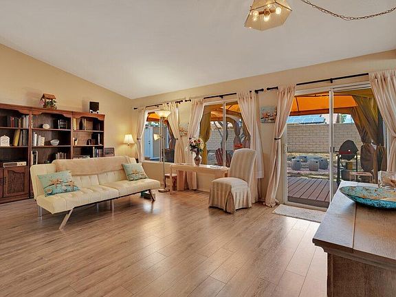 4 Bedroom, 2 Bathroom, in North Palm Desert for under $600K! This home is a must see, extremely clean and well cared for. Several recent upgrades, including new paint in several rooms, epoxied garage floor with new led lights, new landscape ground cover and more. Kitchen has lots of cabinets, apron sink, large area for custom fridge/freezer and lots of counter-space. Front and back yard fully landscaped. Backyard is very peaceful with raised wooden deck, 2 large canopy covers, large shed, wonderful garden and large dog/animal area. This home has been appraised and priced to sell! Extra bonus is another family room/office/ kids area located next to the 3 bedrooms.