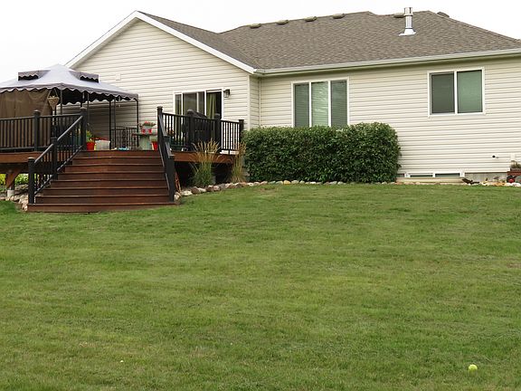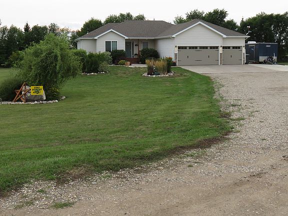 Quiet country living, 5 minutes from Jamestown, ND, close to golf course, 4.65 acres, 5 bed, 3 bath, 3 walk in closets, storage room, gas fireplace, deck, heated 3 stall garage, fire pit. Propane fuel, central air. $375,500