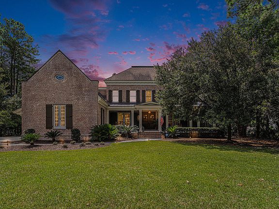 Nestled in the exclusive, gated golf course community of Dunes West, this Southern Living-inspired Abberley Lane design sits on a 1-acre wooded lot with breathtaking views of the golf course. From the moment you step inside, you're enveloped in elegance and warmth, with a smartly-designed floor plan that is perfect for both everyday living and entertaining. The home is bathed in natural light, highlighting the rich Caribbean Walnut flooring, detailed crown molding, and fabulous 10-foot ceilings that create a sense of grandeur. To your left, a stately library with custom built-in shelving and a fireplace offers the perfect setting for a home office or reading nook. As you continue, the heart of the home--the chef's kitchen--awaits, featuring custom cabinetry, a massivecenter island, Wolf range with griddle, Sub-Zero refrigerator, warming drawer, and double ovens. It's a culinary haven designed to inspire both new creations and beloved family recipes. The adjoining great room extends seamlessly to the spacious back porch, allowing for easy indoor-outdoor living and spectacular golf course views! Retreat to the luxurious first-floor owner's suite, complete with an elegant fireplace, private access to the porch, and a spa-like ensuite that exudes total relaxation. The owner's suite also boasts an awe-inspiring custom closet and washer/dryer for convenience. Continue beyond the great room on the first floor to find a guest suite that will delight any guest or family member. Ascend the stairs to find 3 ample-sized bedrooms, 2 additional bathrooms, full laundry room, and a huge playroom/bonus room. Finally, be wowed by the gorgeous backyard adorned with a 2024 Atkinson-designed 20-ft by 40-ft heater and cooled pool, including state-of-the-art Hayward pool system. This resort-style pool features travertine tile surround, tanning ledge with lounge chairs, 6-foot depth in the center, waterfall feature, heated and cooled, and privacy wall along the golf course. Beauty meets durability as this gem is composed of pebble-tech "shockcrete" and has an auto in-floor cleaning system. There is also a salt water hot tub that is less than 2 years old! All are surrounded by a low-maintenance, baked aluminum fence! This backyard is so fantastic you will never want to leave home! Additional features include ENCAPSULATED CRAWLSPACE, Rinnai tankless water heaters, and an oversized three-car garage with floor-to-ceiling shelving boasting pristine epoxy flooring. Residents also enjoy access to Dunes West's top-notch amenities, including a premier golf course, three resort-style pools, a private gym, and miles of scenic walking trails. This is more than just a home- it's a lifestyle of luxury and comfort!