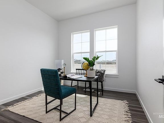 "The Bannock" exudes contemporary comfort and functionality, exemplified by its thoughtfully crafted single-story layout. A long foyer sets the stage, leading to a spacious great room seamlessly connected to the kitchen, casual dining area, and covered patio—an ideal setting for gatherings and relaxation. The kitchen is centered around a striking large center island and enhanced by its expansive walk-in pantry. The primary bedroom suite, nestled in the rear of the home, features a serene sanctuary complete with a luxurious walk-in closet and a primary bath with separate vanities, and a luxe shower. Off the foyer, two secondary bedrooms and a bathroom offer privacy and comfort, while a versatile home office and powder room round out the home. 3 car garage. Front and rear landscape included. Home is under construction and photos are similar. BTVAI