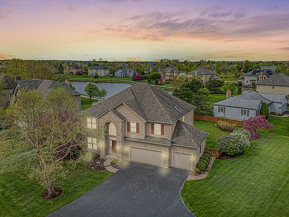 Majestic home positioned on a large corner lot. Soaring vaulted entry way flows to Formal living and dining rooms. Continue to spacious kitchen that opens to the family room with floor to ceiling windows flanking the gas fireplace with mantle. Sliders from kitchen lead to a newly fenced yard, paver patio with built in seating, professional landscaping and stunning views of community pond. Also on the first floor is a bedroom, perfect for an au pair, office or guest room. Upstairs you'll find 4 generously sized bedrooms off a beautiful hallway that overlooks the family room downstairs. The Primary Suite is MASSIVE! And of course it has an equally impressively sized bathroom, room for lounging and a walk in closet. Jetted tub, separate shower, double sinks in the primary bath. Laundry room is conveniently located upstairs. Home has a full basement that half is finished and the other half is unfinished and available for storage. 3 car garage and a horseshoe driveway with easy access from Persimmon or Bunker Hill! Location can't be beat - close to restaurants, shopping, entertainment, recreation, Randal road corridor and major highways. Convenient to quaint and recently revitalized downtown Algonquin and the serene Fox River with parks and restaurants along the banks. Come see all that Algonquin has to offer. Seller would like a June 28th or July 1 close.