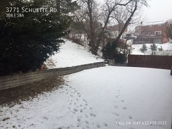 This 912 square foot single family home has 3 bedrooms and 1.0 bathrooms. This home is located at 3771 Schuette Rd, Pittsburgh, PA 15227.