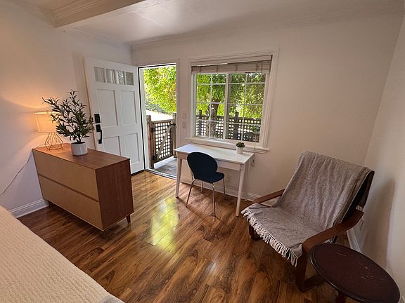 Beautiful, Furnished Studio by Lafayette Reservoir Stylish studio apartment with private deck available for short term (2 - 11 mos) beginning Sept 01. Perfect for visiting relatives, executive rental, or pied-a-terre. Features of this studio - Kitchenette with stainless steel refrigerator, microwave, toaster oven & hot plate, beautiful granite countertops and cabinetry. Bathroom has built in cabinets, custom tile work and shower with glass door. High-end hardwood laminate over radiant heat floor. Neutral paint scheme, crown molding, light fixtures with dimmers. Tankless water heater. Double pained windows. Private tree shaded deck with hill views. Fully furnished: comfortable queen sized bed, dresser, desk, lounge chair, clothing storage solution, dinnerware, cafe table with chairs. Coin operated washer and dryer onsite for longer term lease. House-like building in friendly residential neighborhood. Next to Lafayette Reservoir. Half mile from BART, Trader Joes, post office and restaurants. All utilities, garbage and recycling included. Wifi not included. Security deposit and credit check required. Short term lease from 2 month-11 months. No smoking. Coin operated W/D available if longer lease.