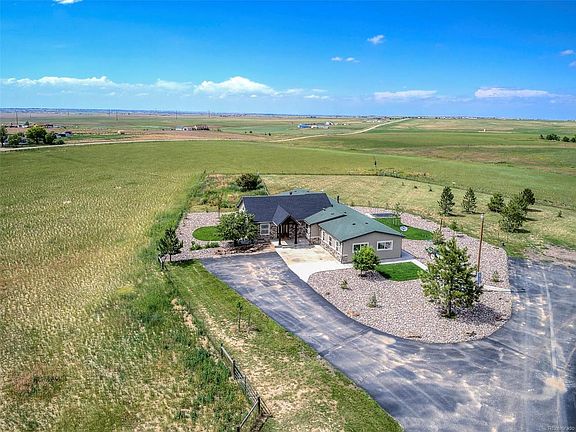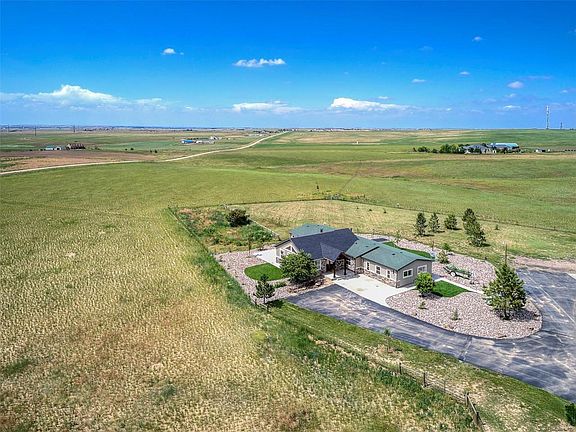 Have you always wanted a ranch home, with privacy from your neighbors, unobstructed mountain views, yet still close enough to Denver for a day trip? Well this is it. This property has it all. All the upgrades, all the space and all the serenity you could ever ask for. This gorgeous home sits on 40 acres, has an over-sized barn and a separate mother-in-law suite. The front porch greets you with French double doors, tile flooring and creates an overall classy & cozy feel in this great-room. The kitchen is equipped with double ovens, granite counter tops, and a breakfast nook. The master bedroom has a walk-in closet and the master bathroom has an overall spa-type feel. Just off the living room sits the office for those work-from-home days. Make the finished basement your own; a man cave, a movie theater or an additional bedroom. Outside is a paved driveway, 10 mature pine trees & a pond with a fountain.