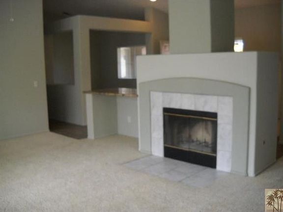 Great single story with open floor plan with unobstucted view from your large backyard. Quiet community in Palm Desert off of Frank Sinatra this home features 4 bedrooms and 2 full baths with the family room opened to the kitchen. Separate living room and dining room with the family room featuring a wonderful gas fireplace. Master suite with a walk-in closet and tub with over head shower a double sink vanity. The 2 car garage is attached and has a long driveway for extra cars. Laundry room is separate room and inside. The master and one other bedroom/office/play room is on one side of the house and the other 2 bedrooms to the other side.Freshly painted and ready to move -in.