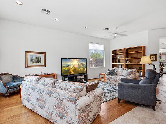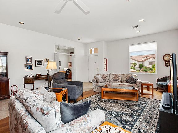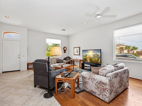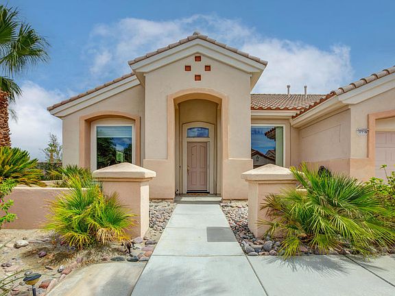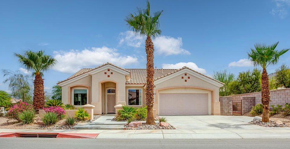 Don't miss this fabulous home in the highly desirable Sun City Palm Desert community! The home is a spacious 2042 sq ft with 2 bedrooms, 2 bathrooms and an office with built-in desk and shelving. The charming eat-in kitchen features updated appliances. The owner has also updated the HVAC systems! The home has an attached 2-car garage with a golf cart nook and is situated on an oversized corner lot, with plenty of room for puttering and gardening if you like. While having your morning coffee or happy-hour cocktail on the covered back patio, you can enjoy a glimpse of the gorgeous mountains. Sun City is a beautifully maintained, well-established community with golf, tennis, pickleball, fitness center and much more!