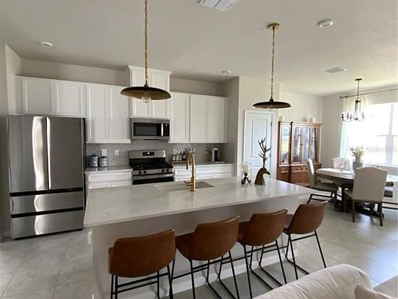 Home built in Feb of 2024. Built right next to the brand new Publix and the upcoming Wyld Oaks project. This home offers an open floor plan with a large kitchen island and lots of windows for bright natural light. The kitchen is designed with a large island with quartz counter tops, two pantries, plenty of cabinet space and a gas stove. The beautiful owner suite offers a dual sink vanity, a large walk-in closet, tiled shower to the ceiling, and a private commode area. The foyer is finished with attractive millwork for an upscale entrance. The guest bathroom is newly updated with an above counter sink and beautiful quartz countertops. Enjoy peaceful evenings on the lanai overlooking your beautiful backyard. New vinyl fencing is installed on the left and right side of the home in the backyard with aluminum fencing across the rear. Come and enjoy plenty of outdoor recreation in a beautiful home in Parkview preserve offering abundant community amenities to include a playground, dog park, walking trails and right next to a beautiful pool and cabana. Tenant is responsible to pay utilities that varies depending on usage. Renter is responsible to pay utilities monthly and at the time of signing the rental deposit is due along with last months rent.