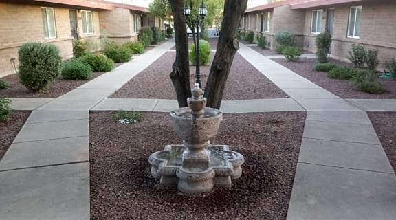 This is a totally renovated apartment with all tile floors in a beautiful neutral color, custom cabinetry in the kitchen, newer tile and fixtures in the bathroom, a brand new HVAC, and it has been freshly painted from stem to stern! The rooms are spacious, and the storage is spectacular, including a coat closet in the LR, a pantry/linen closet, large closet in the 2nd bedroom, walk-in closet in the MBR, laundry closet with shelving, and a separate storage closet outside off the private yard area. Window blinds are included, and there is a washer/dryer hook-up. This is a primo end unit, which has a larger yard than most, and covered parking is just steps away from the front door. We have a Maintenance Contractor who keeps everything repaired, and the grounds clean and neat. Sorry, no Section 8. The park-like setting includes a ramada and BBQ area. Central location one block south of Ft. Lowell, and one block east of Dodge. See it now, as this beauty won't last! First and last plus deposit. Make application on this site at the bottom of the page after you have seen the apartment. Owner covers trash, water and sewer. Tenant pays electric. One year lease.