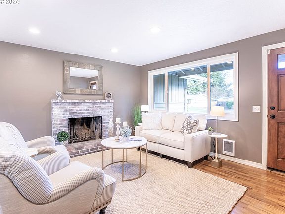 Open House Saturday February 10th 12:00pm-2:00pm. Move-In Ready Home in Santa Clara! This stunning single-level home is located in a cul-de-sac, on a .4 acre lot in the highly sought-after neighborhood. The home has been beautifully updated and is move-in ready. The kitchen has been remodeled with white Ikea cabinetry, matte finished granite, stainless steel appliances, garbage disposal, faucet and updated flooring. The living room boasts a wood-burning fireplace, hardwood flooring and nine can lights for excellent lighting. The dining room has a new fixture and a newer slider that leads to a wonderful covered patio. Updates have been made throughout the house over the years. In 2016, a new 8ft. garage door with an opener, water heater, can lights, and new vinyl flooring were installed. In 2018, the kitchen was remodeled with matte granite, Ikea cabinets, stainless steel dishwasher, microwave and stove. In 2019, a new electrical panel was installed and there were two ductless units added for heating and cooling throughout the house. The primary bedroom also has a newer closet organizer and ductless unit. In 2023, a bathroom remodel was completed with a new tub and shower, heated tile floor, vanity, toilet, sink and faucet. The backyard is a gardener's dream and an entertainer's delight. It includes a swimming pool that can stay, and a new Cedar fence was installed in 2020. There is also a well with pump for easy and inexpensive yard irrigation. Enjoy the outdoors year-round under the covered patio and additional uncovered fire pit area. The massive amount of space allows for storage of boats, toys, RVs, etc. There is even an extended paved driveway for easy access to the backyard or for boat/RV parking or extra car parking. Exterior painted in 2019 and updated windows are also included. Only 15-20 minutes from the University of Oregon and downtown Eugene. Low Taxes 2,311.00
