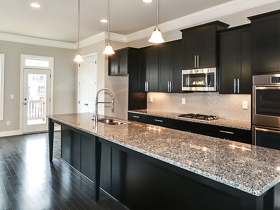 The Chelsea V Plan is a three-story townhome offering 3 bedrooms and 3 bathrooms. This plan features a full bathroom and media room or guest bedroom on the terrace level. ? Create lasting memories in your new fireside family room - perfect for game nights, movie nights, and entertaining. ? The dining area provides the perfect space for dinner parties or special occasions. ? Spacious gourmet kitchen boasts a large island, stainless steel appliances, and ample counter space. ? Laundry room centrally located near the owner's suite and secondary bedrooms for your convenience. ? Located in the owner's suite, the owner's bathroom features a double vanity, tiled walk-in shower, and large soaking tub to indulge in after a long day.