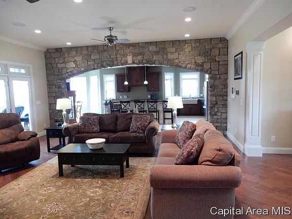 BUILT 2011. CONTEMPORARY RANCH, LL WALK-OUT. MAIN LEVEL GREAT ROOM W/FIREPLACE, WOOD FLOORS, BUILT-INS, FORMAL DR W/TREY CEILINGS. STRIKING STONE ARCH-WAY TO CUSTOM KITCHEN W/OVERSIZED ISLAND W/GRANITE, SS APPLIANCES, INFORMAL EATING SPACE OVERLOOKING BEAUTIFUL MANICURED YARD & LAKE. REC ROOM HAS CUSTOM BAR/KITCHEN, GRANITE COUNTERTOPS. LL-4 BED W/BATH & SPACIOUS OFFICE OR BD OVERLOOKING YARD & LAKE W/ABOVE GROUND POOL. BONUS': ELEC. CONTROLLED THERMOSTAT, GEO THERMAL, SECURITY SYSTEM, WHOLE HOUSE VAC, CUSTOM SURROUND SOUND. SCREEN PORCH. 3.5 HEATED GARAGE. 6-22 NEW OUTDOOR KITCHEN ADDED.
