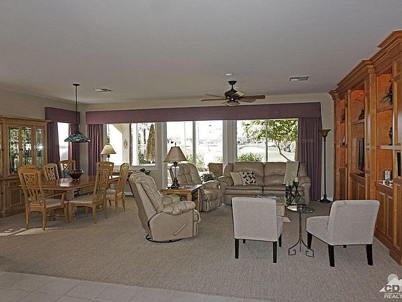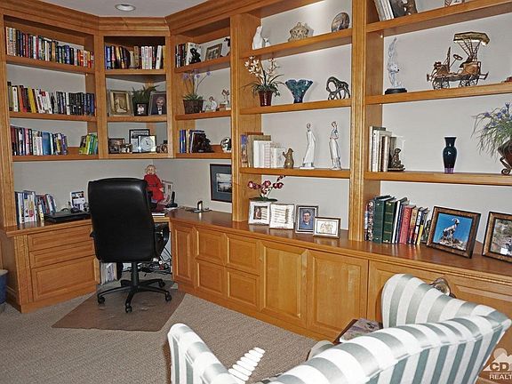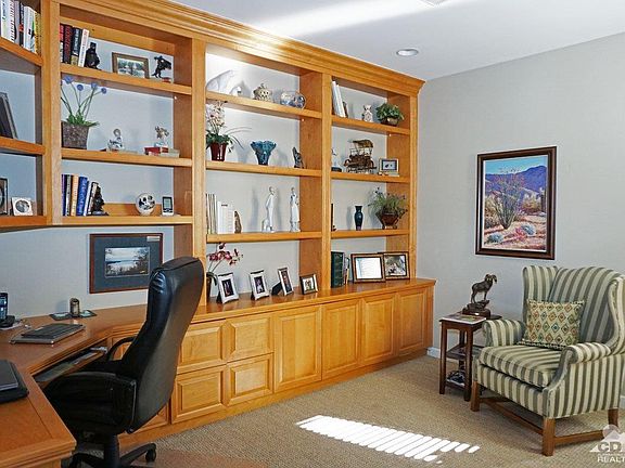 Sun City Palm Desert. St. Croix Model Home On The Golf Course With Panoramic Views Of The Fairway & Mountains. This Home Consists Of 2 Bedrooms, 2 Full Baths, Great Room, Guest Room, Den & Bonus Room & Laundry Room. The Great Room Has A Built In Media Entertainment Center And Has A Magnificent View Of The Golf Course & Mountains. There Is A Large Master Bedroom With Attached Master Bath. The Den Has Been Converted To An Office With Custom Built In Desk & Library And Plenty Of Storage. There Is A Covered Patio And Lush Landscaping And The Views Are Spectacular. The Garage Is A 2 Car Garage Plus A Golf Cart Garage. This Home Has Been Meticulously Maintained.