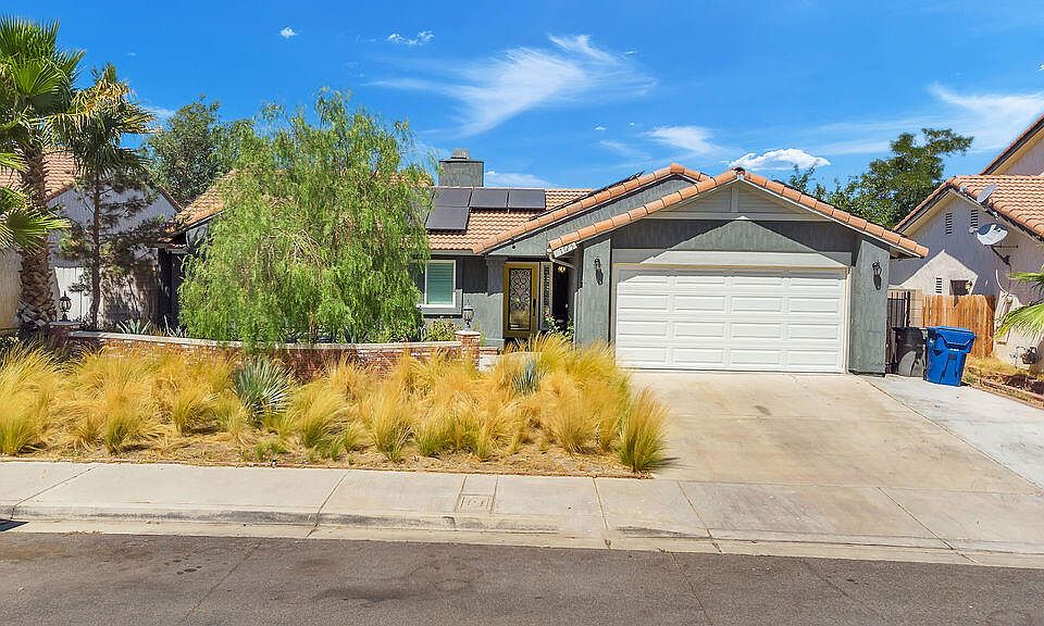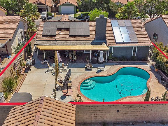 This immaculate Palmdale Pool home with solar is in an established neighborhood featuring 3 bedrooms and 2 bath , some of the many upgrades includes, crown molding , plantation shutters, access doors leading to a covered patio, tiled roof and more. The landscape includes a water efficient design surrounded by hardscape which was professionally done. Summertime is pool time. For additional energy efficiency the solar system includes back up Tesla Batteries.