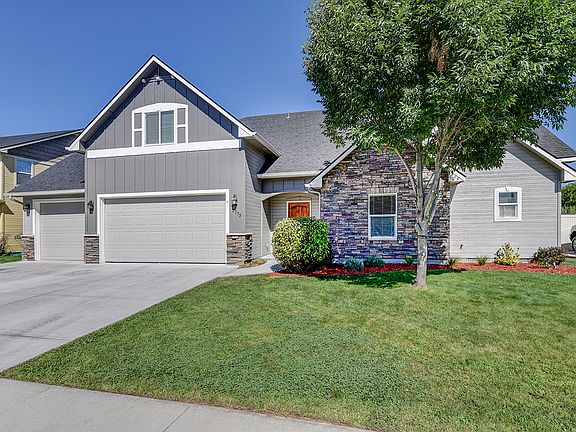 Welcome home to this STUNNING residence tucked away on a quiet, larger lot at the edge of Champion Park! This home is just minutes from shopping and restaurants on Eagle Rd and just a short walk to Champion Park itself. You'll love this well-thought-out floor plan with the main level master bdrm and office (or bdrm) PLUS three bdrms and bonus area upstairs. This open, airy home features hardwood and tile flooring, granite countertops, stainless steel appliances, new exterior paint, large backyard and more!