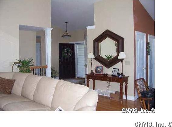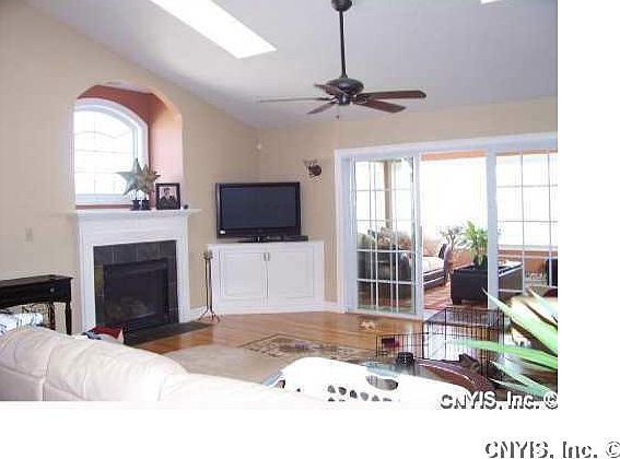 Gorgeous upscale patio home! Beautiful sun porch with view that goes for miles overlooking Camillus. Granite counters in finely detailed kitchen. Hardwoods and upgraded tile throughout. Built-in private office with book shelves,desks and computer area perfect for home business. Two gas fireplaces -one on main level great room and one in lower level family room/rec room area. Walk out in back to huge paver patio with covered columned area. Three full baths. Surround sound . High efficiency furnace and hot water heater for low utility bills. All exterior maintenance included. Great location!