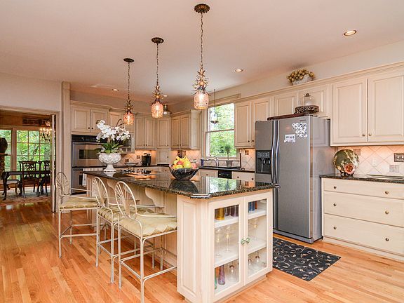 This custom built estate home has 4 or 5 Bedrooms, 4 full baths & 2 half baths. It was built w/ careful attention to detail & w/ many amenities to be appreciated. The main level has lots of natural light & stunning views of the gardens & private wooded lot. All of the living spaces are large & the home has an open flow w/ vaulted & sloped ceilings, crown molding & 9 ft or higher ceilings. The gourmet kitchen has custom cabinetry, granite countertops, stainless appliances, a large center island w/ breakfast bar & is open to the Great Room. There is also a separate eating area overlooking the courtyard. The Master Bedroom has cove lighting, a vaulted ceiling, & a beautiful palladium window w/ a marvelous view out the front of the home. There is a second room w/ a FP used as a cozy den that could be a 2nd Bedroom on the main level. There is a full guest bath adjacent. Three additional Bedrooms & 2 full baths are upstairs. Downstairs has a Bonus Room, full Bath, Office & 4th Gar.