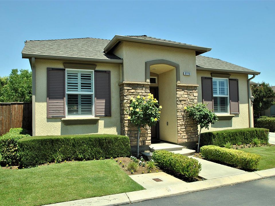 Adorable Wathen-Castanos Cottage in and out. Best location in Harlan Ranch: 3 sides without neighbors and 200 yards to pool and club house, yet secluded and very private. This floor plan has the 2nd bed off the Master often used as an office. Charming upgraded hardwood flooring, Saltillo custom tile, Wolfe cook top and oven, SS appliances and granite. Plantation blinds throughout. Pot holder and refrigerator goes with sale. Very private backyard with patio and mature landscaping. One of a kind! Must see to appreciate. Parks, pool, clubhouse. This is a sought after and well planned development.