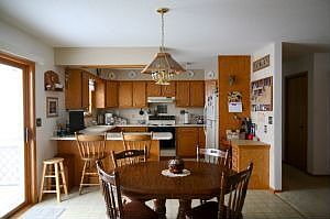 This charming home showcases some of the latest trends in energy efficiency with the geo thermal heat pump, backflow preventer and dual heat system. The split level is walkout to the lake. Upper level views with all the common spaces lakeside. Full bath up and down, mainfloor laundry and master bedroom. Garage with heated workshop. Storage shed and open storage for the boat.