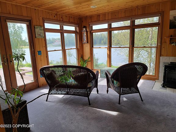 Discover lakeside luxury on East Mackey Lake - perfect for float planes! Revel in this updated 3BD/2BA Delight in lake views from a both the living room & family room, Modern touches throughout, abundant storage space to organize your belongings in both the home & garage. The essence of Alaskan living awaits! Lakefront property on 1/3 acre with an extra 2/3 acres on either side ensuring privacy!!