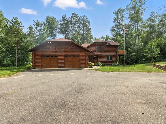 Escape to your dream retreat with this stunning custom-built log home, nestled on nearly 3 acres of serene, wooded privacy. Warm up by the cozy stone fireplace in the inviting main living area, where expansive windows frame breathtaking views of the surrounding nature. The main floor boasts a spacious bedroom, and a full bathroom featuring a luxurious clawfoot tub. Upstairs, the private loft primary suite offers a tranquil escape. Follow the wooded path to 110' of hard sand shoreline, perfect for waterfront recreation and relaxation. Ample storage awaits in the attached 26'x28' garage and the detached 30'x40' garage. Plus an area is already cleared, ready for your expansion ideas! Embrace rustic elegance and modern comfort in this one-of-a-kind sanctuary!