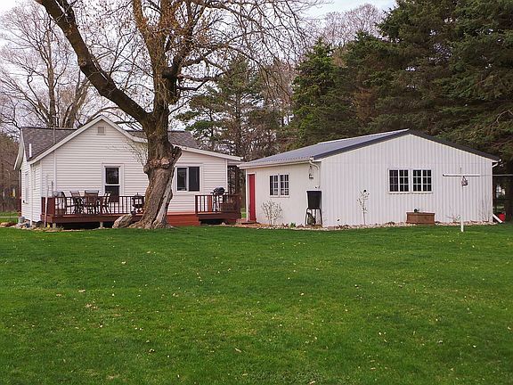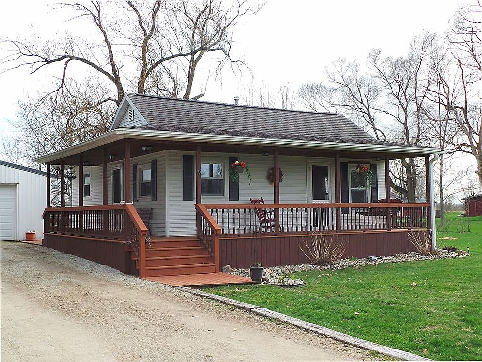 This adorable country home has a wonderful wrap-around porch plus a large deck off the back overlooking the spacious yard. Detached garage with ample storage. New flooring, paint, and light fixtures throughout. Kitchen features oak cabinets, pull-out drawers in pantry plus all the appliances are included. Beautiful landscaping.