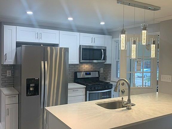 Luxury renovation in Belair Edison! This porch front townhome is finished with modern luxury. Crown moldings on the first level impress the high quality of your tour with recessed lighting throughout. The living room has a modern built in fireplace with color changing flames to suit your desire. The open kitchen & dining room boast quartz counter tops sparkling from the cylindrical glass lighting, stainless appliances, soft close cabinetry, & custom tile back splash. Enjoy peaceful solitude with a lower master suite with the largest closet. The master bath has a tiled shower, & storage vanity. Two carpeted bedrooms & full bathroom are on the top level. Have peace of mind with replacement windows, new HVAC, & AHS Home Warranty. Home buyer grants are available in this community!