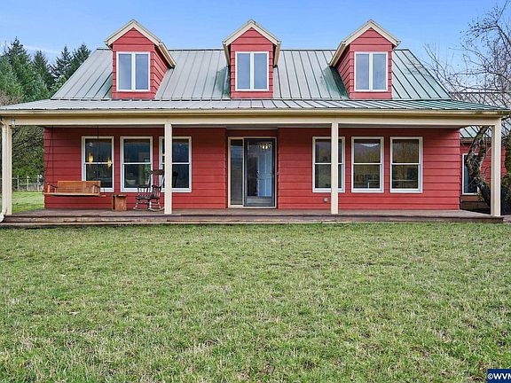 Unique green home w/ great views, near riding trails, mins to Corvallis. 4 BR/2.5 BA +bunkhouse. Formal living & dinging w/ Alaskan pine & oak flooring, huge kitchen w/ granite counters, chinquapin cabinets. Primary Ste w/ tile shower & barn doors. 500SF bunkhouse w/ sauna &bath. 6-stall matted horse stable wired for shop, 400SF hay barn, 2 xfenced pastures w/great drainage &native grass. Geothermal heat & cool, 4+ car grg & carport, great well. Large patio, cozy porch, solar panels, mature fruit trees.