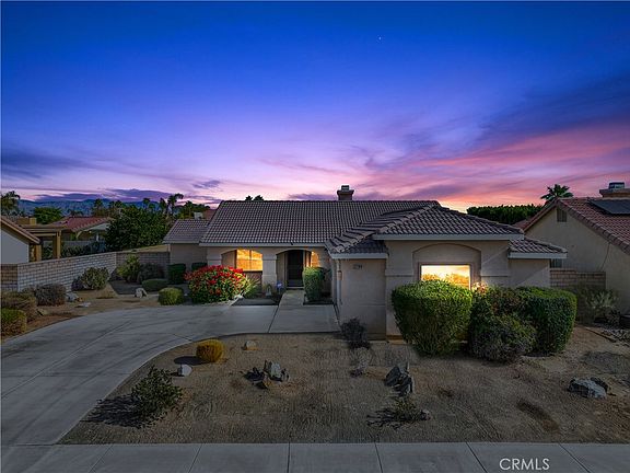 First time on the market in 20 years. This move in ready 3 bed 2 bath home is located in a small enclave built by Kaufman/Broad and has no HOA fees. Freshly painted crisp white interior with new contemporary lit ceiling fans, this floorplan is split with the primary suite on one side of the house and the secondary bedrooms on the other side. Formal dining, living, and a great room/kitchen combo make this a very livable and entertaining friendly design. Large windows on the back side of the house look onto the private pool with a spa that cascades into the pool as a nice water feature, with desert landscaping surrounding and views of the San Jacinto and Santa Rosa mountains. Located near shopping, restaurants and all that Palm Desert has to offer make this a great primary home, or a desert getaway.