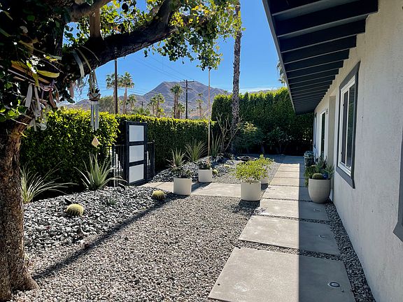 Prime Location Awaits! Discover this beautifully updated mid-century ranch home nestled in the desirable Cathedral City Cove! Just above Highway 111, this gem is perfectly situated in the heart of the Coachella Valley, only a 12-minute drive to the vibrant scenes of Palm Springs and Palm Desert. Enjoy the convenience of being close to down town restaurants, Mary Pickford Theatre across the street, and the Aqua Caliente Casino. As well as the new Cathedral Cove Center, featuring popular spots like Chipotle & Starbucks. You'll also be near the downtown Cathedral City festival grounds, which host exciting annual events such as the Hot Air Balloon Festival. This property boasts breathtaking mountain views and is set on a spacious, lush lot. The home features a two-car garage, a two-car driveway, and additional RV parking, providing ample space for your vehicles and outdoor toys. Energy-efficient with its desert front yard landscaping and newer dual-pane windows, this property is designed for comfort and sustainability. Step inside to find a large fireside living room, open concept lay out, and stunning poured terrazzo floors throughout. With three bedrooms and three bathrooms, including a junior suite with its own private bathroom, this home has been thoughtfully updated. Enjoy year-round comfort with two dual-zone HVAC systems. This rare opportunity to rent a modern desert dream home won't last long. Come see it today! Key Features: - 360 Video Wired Video Camera Security System. - 3 Bedrooms & 3 Bathrooms: Spacious and well-appointed rooms designed for comfort. - Open Concept Living Space: Bright and airy layout ideal for gatherings and family time. - Artist Studio or Office : A dedicated space perfect for unleashing your creativity. - Recent Updates: dual-pane windows, stunning poured terrazzo floors flow throughout the home, adding elegance and easy maintenance, and beautifully remodeled bathrooms. -Built in cabinet closets in primary bedroom and junior suite. - Luxurious Primary Bathroom: Experience relaxation in the primary suite with a soaking tub. - Private Outdoor Oasis: Enjoy the serene surroundings with a beautifully landscaped yard. -2 car garage with additional built in cabinetry storage, washer and dryer hook ups in garage and in home, washer and drier currently in home off of living room. Rental Details: - Rent: $3,300.00 per month - Utilities: Tenant to carry renters insurance, tenant is responsible for water, gas, and electric utilities. Owner pays for trash service. - Pets: Pets are allowed with landlord approval. This exceptional home combines modern updates with a tranquil setting, making it a perfect place to call home. Don't miss your chance to experience the best of Cathedral City living! Contact us today to schedule a viewing and make this stunning property your own! One year lease, tenant to pay for landscape, water, gas and electric utilities. Tenant must cary renters insurance, two dogs allowed upon approval, dogs must be under 25lbs. Land lord to pay for trash service.
