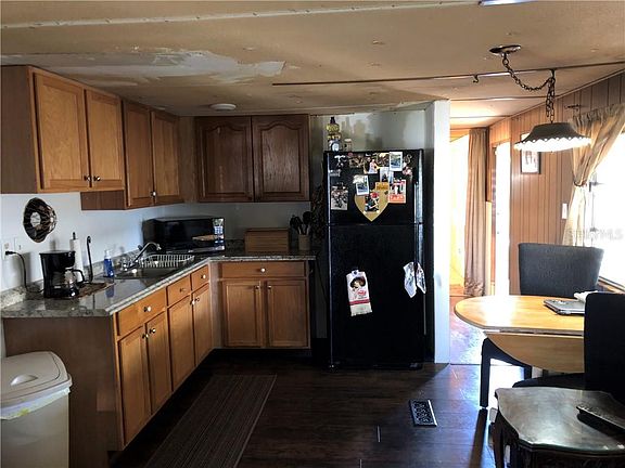 HAPPY PLACE TO ENJOY ON A BUDGET. 2 bedrooms, bath with walk-in shower, screen room, storage room and nice grilling area in backyard under the shade. This home has a roof- over and has newer kitchen cabinets & counter top. Newer, dark laminate floors in living room & kitchen area. A few touch ups here and there and the remodel will be finished. Excellent location with easy access to restaurants.Being Sold as is with the Buyers right in inspect.