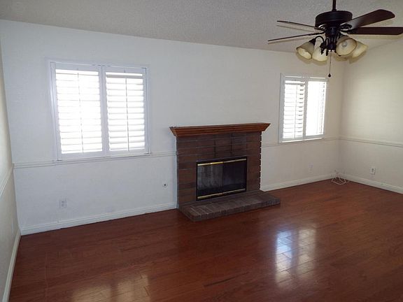 Great corner lot with RV access. As you enter the tiled foyer you are greeted by a large living room with big windows covered with plantation shutters. The kitchen has tile floors and counter tops. The separate family room has a brick fireplace and wood laminate flooring. The hallway and secondary bedrooms are also in wood laminate. Master bedroom is carpeted. The backyard has a large patio cover perfect for Antelopes Valleys evenings.