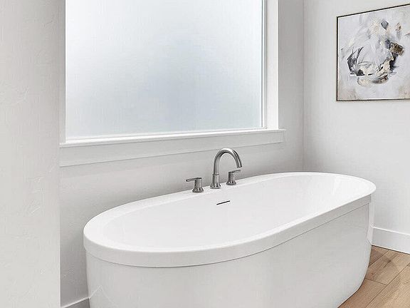 - Ceiling Fan(s), Double Vanity, Enclosed Toilet(s), Kitchen Island, Open Floorplan, Pantry, Primary Downstairs, Shower/Tub Combo, Soaking Tub, Solid Surface Counters, Tile Shower, Walk-In Closet(s)