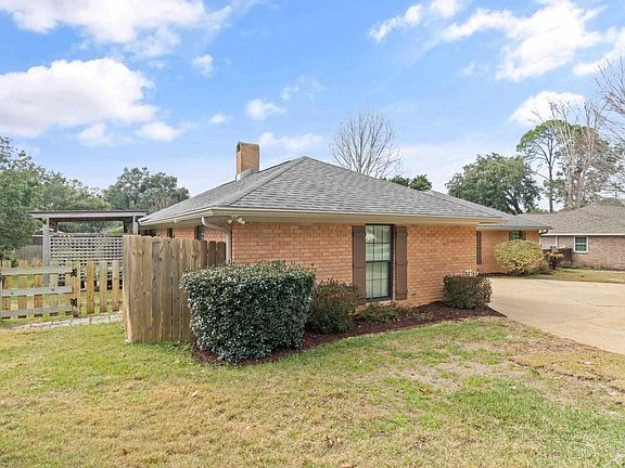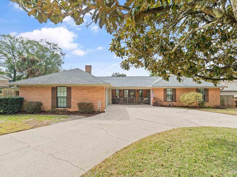 This beautifully updated Cordova Park ranch combines modern upgrades with timeless charm. A covered front porch welcomes you into a home featuring a stunning brick foyer, updated plumbing, hurricane-rated windows and doors, spray foam insulation, and an alarm system for efficiency and security. Inside, hardwood floors, custom cabinetry, and quartz countertops flow throughout, including the kitchen, bathrooms, master suite, and even the garage. The eat-in kitchen offers stainless steel appliances, a woven tile backsplash, and a spacious pantry, while the den and dining room showcase a white brick fireplace and classic pine paneling. The large master suite boasts a sitting area, built-in desk, walk-in closet, and custom glass shower. Two additional bedrooms, an interior laundry room, and plantation shutters complete the inviting space. Outside, enjoy a privacy-fenced backyard with two patios, a pergola, and a hot/cold outdoor shower—perfect for entertaining. Located near parks, tennis courts, the airport, and hospitals, this move-in-ready home offers style, functionality, and convenience!