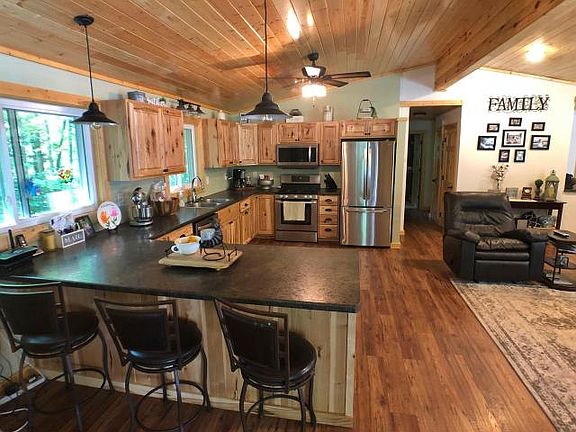 Modern styled country home that is extremely well maintained & ready for you to just move in & start living. This 2+ Bedroom (lower level bedroom has no egress window) 1.5 bathroom home has everything you need & more of what you want. Open concept kitchen and living room w/ connected formal dining area, lot of window for great natural light, wood laminate & tile flooring, updated kitchen & bathrooms w/ stainless appliances, heated attached garage, large entry area, yard space for pets & kiddos, 1.84 Acres of land, & large patio & deck space for outdoor entertaining. Living room gas fireplace w/ vaulted ceilings & a non-traditional ranch style layout. Lower level offers a walkout to the patio & fire ring as well as the large family room. This property is only 5 miles from town, is located on the ATV trails & close to many premium bodies of water. New roof 2018, & main level remodel/ LP smart siding/ windows/ garage door 2017. This home is what the Northwoods Lifestyle is all about!