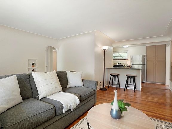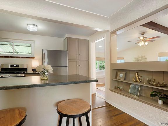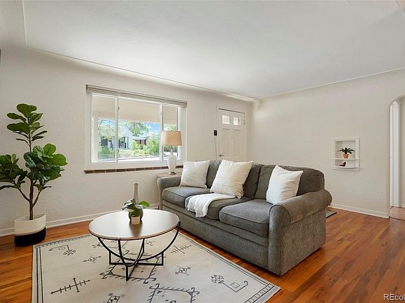 Beautifully maintained single family home in the heart of Englewood. Timeless details throughout, mixing the old with the new, including hardwood floors, original coved ceiling, modern updated kitchen and bathroom and more! Gorgeous curb appeal, with its meticulously maintained landscaping, a true gardeners dream, a new fence, and a rare 1 car attached garage. The quiet covered front porch is welcoming as you enter the home onto the beautifully maintained living room hardwood floors. The updated kitchen includes modern cabinetry, countertops, custom backsplash, and stainless steel appliances. Step down from the kitchen into the family room, which is an ideal flex space and can easily be converted into a 3rd bedroom, dining room, media room, and more possibilities. The family room has access to the backyard covered patio, taking in the scene of the stunning backyard and partial mountain views. Back inside are two bedrooms, and one fully updated bathroom. The laundry room completes the floor plan, with a stackable washer and dryer, pantry, utility closet, and ample storage space. The 1 car attached garage also has a large storage space, with an upper section for your extra items. ***Brand New AC installed in April 2024, brand New and never used gas stove/range installed May 2024, newer exterior paint, newer interior paint, new rear siding, updated electrical, updated windows, new ducting*** A must see, close to all that Englewood has to offer. Restaurants, shopping, transportation, and Cherry Hills. Floor plan in pictures