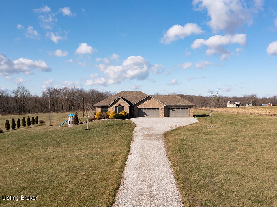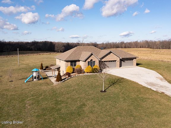 This custom built, all brick ranch home, sits on a scenic 4-acre lot (2 lots w/ different legal descriptions if you decided to sell the other lot) in beautiful Salem, Indiana. You will find the attention to details that were put in this Gary Hollowell built home. The moment you drive up to this sprawling ranch, you will start to notice all the extras this home has to offer. The WALK-OUT Basement, Laundry hookups on both levels, 4 CAR Attached garage, an abundance of maple cabinets, gorgeous granite countertops, backsplash, crown molding throughout, fresh neutral colored paint. The great room does have access to the covered back porch that you can entertain or just enjoy the beautiful view. The oversized main suite is tastefully decorated that includes a huge closet, double vanities, a separate shower, water closet, and a jetted tub. The basement includes a true 4th bedroom w/ large ingress/egress windows. An entertainment area that has plenty of room for family and friends. There is a large patio outside of the walkout basement. This home is a must see!!! The home is appx 30 min. to downtown Louisville.