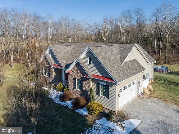 Stunning Custom Built Rancher with 2 car garage on a scenic (7.89) lot that backs to Big Pipe Creek...You have a 1+acre of open land & 6.8 acres of woods for those that enjoy the sport of hunting. For those looking for a 2 story pole building...we have that as well...it's 40x60 and the upper level is 20x16 (floored), 90 Amp service, water hookup, and concrete floor and insulated (car lift negotiable). Now lets get to this beautiful home....2/6 construction, architectural shingles (2 years old) , maple hardwood wide plank flooring, cathedral, 9' & tray ceilings, open design, gas fireplace w/granite surround, main level office with french doors, huge Owners suite with gorgeous private bath, main level laundry with separate sink, Stunning kitchen with soft closure Shaker designed cabinets, granite counters, wrap island, large walk in pantry, beamed ceiling in breakfast room, and the list continues.......The lower level is completely finished. This area could easily be an in-law set up with large bedroom, full bath with beautiful solid glass shower door, huge family room AND rec room with kitchen and it has french doors leading to the yard. This home offers energy efficiency with a heat pump and wood burner stove attached for those cold days where the warmth of burning wood provides an additional level of comfort. Everything you need is offered in this one of kind beautiful property. One level living, lots of storage & space, stunning construction, large lot and building too. Take time to visit this home and be ready to enjoy the tour....