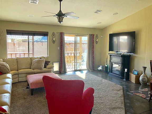 ONE OF A KIND FALLS RANCH HOME. STAINED CONCRETE FLOORS THROUGHOUT. VAULTED CEILINGS, SURROUND SOUND IN LIVING ROOM AND ON PATIO. SPLIT FLOOR PLAN WITH LARGE MASTER SUITE FEATURING UPGRADED TILE SHOWER, DOUBLE SINKS AND WALK IN CLOSET. REFINSHED CABINETS IN KITCHEN AS WELL AS BOTH BATHROOMS. BACKYARD IS READY FOR THE BEST PARTIES ON THE BLOCK. BUILT IN BAR WITH SEATING FOR 30 PEOPLE, TONS OF STAMPED CONCRETE AS WELL AS A NATURAL GAS FIREPIT. DOUBLE GATES FOR RV PARKING AND EXTRA PARKING IN FRONT.