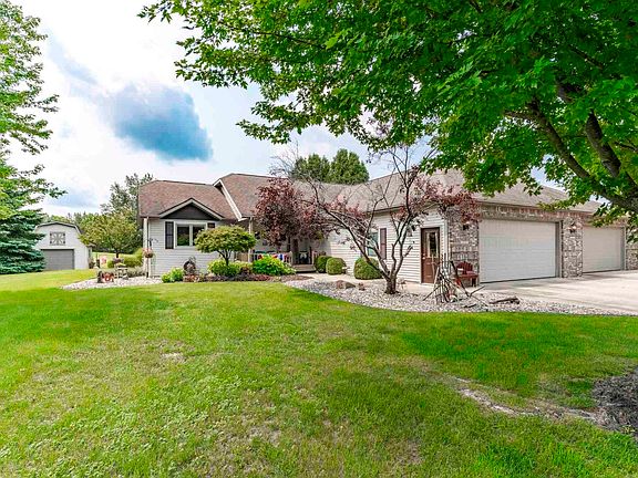Home Sweet Home!! This spacious ranch on a finished basement has plenty of room for the whole family with many amenities! This move-in-ready home features a split floor plan with a spacious master bedroom, walk in closet with shelving for storage, an airy kitchen with breakfast bar and solid wood cabinetry, 6 panel solid doors and plenty of storage throughout, and so much more. The lower level features an oversized family room with a 14 foot bar that has more cabinets for storage, a sink, microwave and full size refrigerator. The basement is wired with a surround sound system and has dedicated Tiffany light fixtures for a pool and card table area. An amazing family space. There is a 4th bedroom on the lower level as well with an egress window and walk-in closet and a second stairwell opening up in the garage. The garage is attached and large with additional cabinetry and storage, drain in the floor, there is a second bay attached that has a gas furnace, workshop area, and an additional garage door facing the back yard to easily remove your riding mower. Outside you have a front covered porch, a back composite deck, stamped concrete and an outdoor storage shed. All situated on .58 acre lot, close to Crooked Lake, close to town for all of your dining and shopping needs.