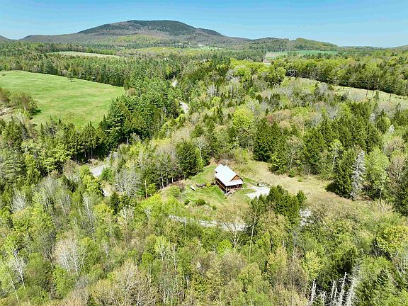 How many properties can advertise their own bridge over a babbling brook upon the entrance or departure from a dwelling? This property is comfortably situated up on a hill looking west into Ryegate, Vermont, with 10.10 acres of continuous land and plenty of indoor/outdoor living space to enjoy time away from work or to work from home. The convenience of cell phone service is available, as well as high-speed internet and other utilities from Witherspoon Road. The Log home has received a charming addition which provided a primary bedroom and a designated laundry space on the first floor. The kitchen provides ample storage space and work space, with a separate dining area closer to the living room. The loft above the first floor living space is a bedroom and has carpeted flooring to reduce noise. The basement walks out into the yard and has potential to be finished into more living space. The basement houses a pellet stove which is efficient and provides ample storage space to keep the upper level clear of totes, tubs, etc. Sitting on the covered porch looking at the view, utilizing the small campsite to roast marshmallows or hosting gatherings, this property provides a canvas for whatever your vision may allow.